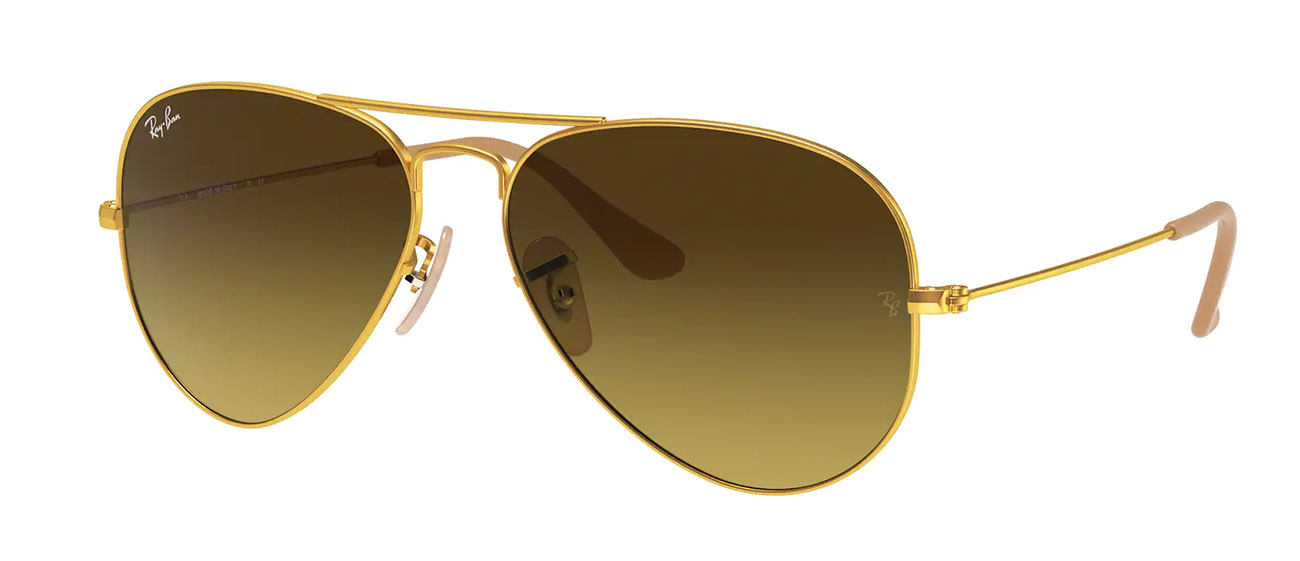 Classic Aviator Style/ Scripted Logo On Lenses/ Teardrop Crystal Brown Gradient Lenses/ Matte Gold Finish